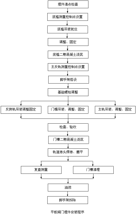 平板閘門埋件安裝程序見下頁框圖。
