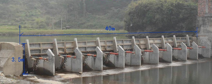 自動(dòng)翻板壩,洪水漫頂20cm后,便自動(dòng)翻板,河道行洪順通,對(duì)保護(hù)農(nóng)田將起到很大作用.